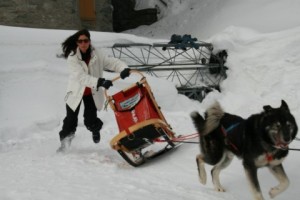 Lorenzo Tilli, Musher extraordinaire and warden of Husky Village in Bormio, Italy is giving his prep talk. Despite the, ‘Mush-mush of movies,’ he says, ‘it is a command rarely used.” ‘IKE, is the command to ‘go’ (detonate would be a more accurate description). Lorenzo’s survival guide is brief: “IKE’ – Go! (Zero to fast, in a flash of paws) HUP – speed it up a little (an entirely unnecessary command we discover) and the life raft of commands – WHOAAHHHH – stop. This trio of commands is followed by the rather incidental lesson on how to drive a sled… As Lorenzo explains to the intrepid group that the term Mushing is from the French derivative marche meaning to go or run and describes any sport or transport by dogs, the dogs jostle and hustle for position in the hierarchy as they are harnessed. There is a frenzy of yipping, barking and swallowed howls as they fiddle and fuss. The huskies display all the patience of a grade one class waiting to be dismissed at recess.