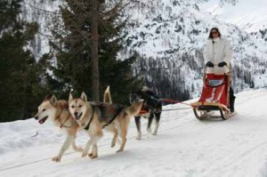 It’s minus 10 degrees. The snow is soft, pristine and the air bitterly cold. The Huskies are brought out from their personalised Lillipution houses – one by one, ethereal puffs of warm breath rising into the cold air. The handlers hold the dogs’ collars tightly, lifting their front legs slightly off the ground. They do a comical kangaroo hop on strong back legs to the waiting sleds. Eyes wild, they twist their heads, craning, coiled-spring alert. In a rapid show of respect from the pack, the narrow path is cleared as each dog is frog-hopped past. Speedy… Luna… Mti… Popil…Amber…Nanuk…. Lucky… Tumi…Fire, and last, his white chest swathed casually in a thick black coat … Sky.
