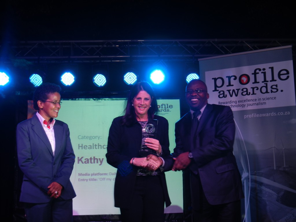 ‘HEALTHCARE Category Winner – Kathy Malherbe for the story Off my chest published in Daily Maverick: This great advocacy piece looks in considerable depth at the topical issue of breast cancer. It is well written and deeply researched covering the pros and cons of genetic testing and voluntary mastectomies and a range of other topics that impact on the sensitive issue of breast cancer. This is an excellent piece of in-depth reportage.’