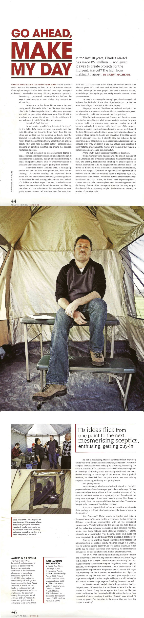 - Profile on Charles Maisel: Go Ahead, Make My Day – Private Edition